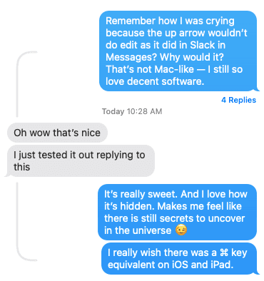 If you are using Messages on Mac, or an iPad with a keyboard, this will make you so much faster.